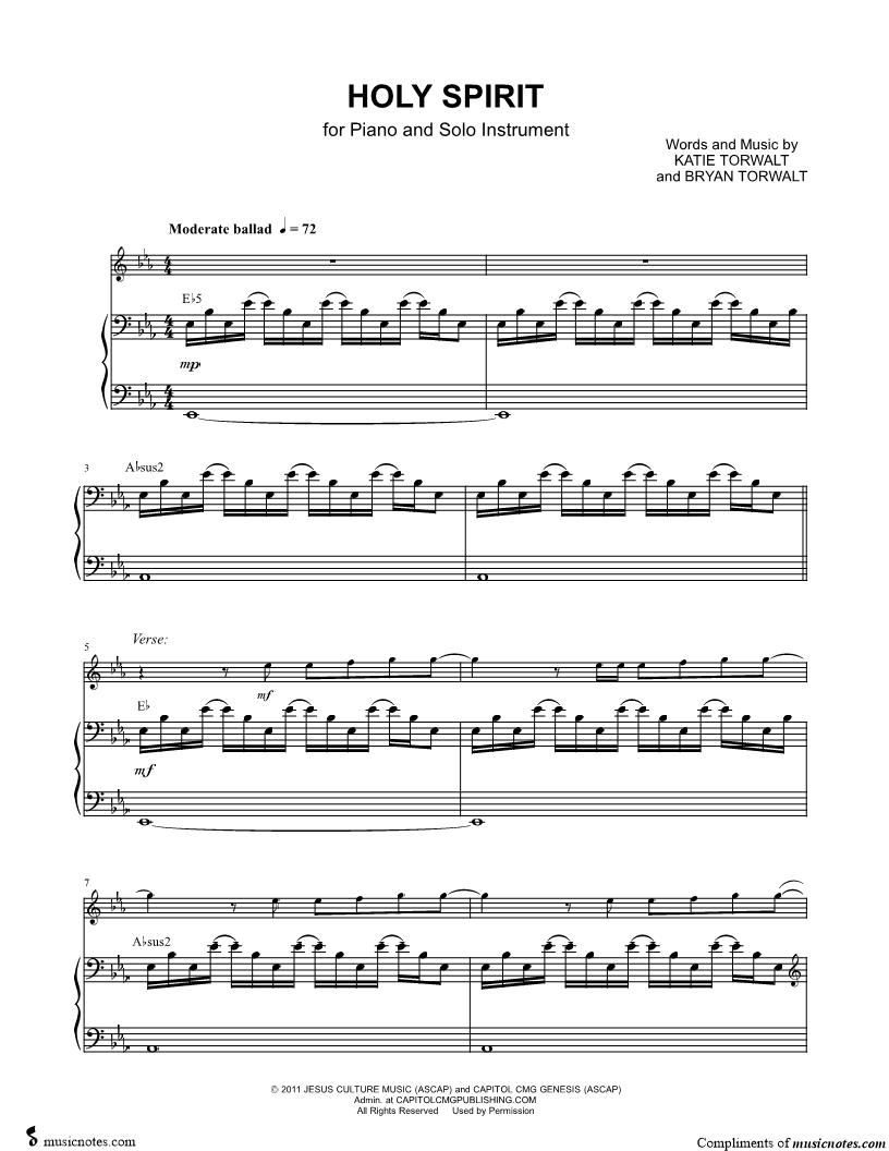 Holy Spirit - Piano Accompaniment |