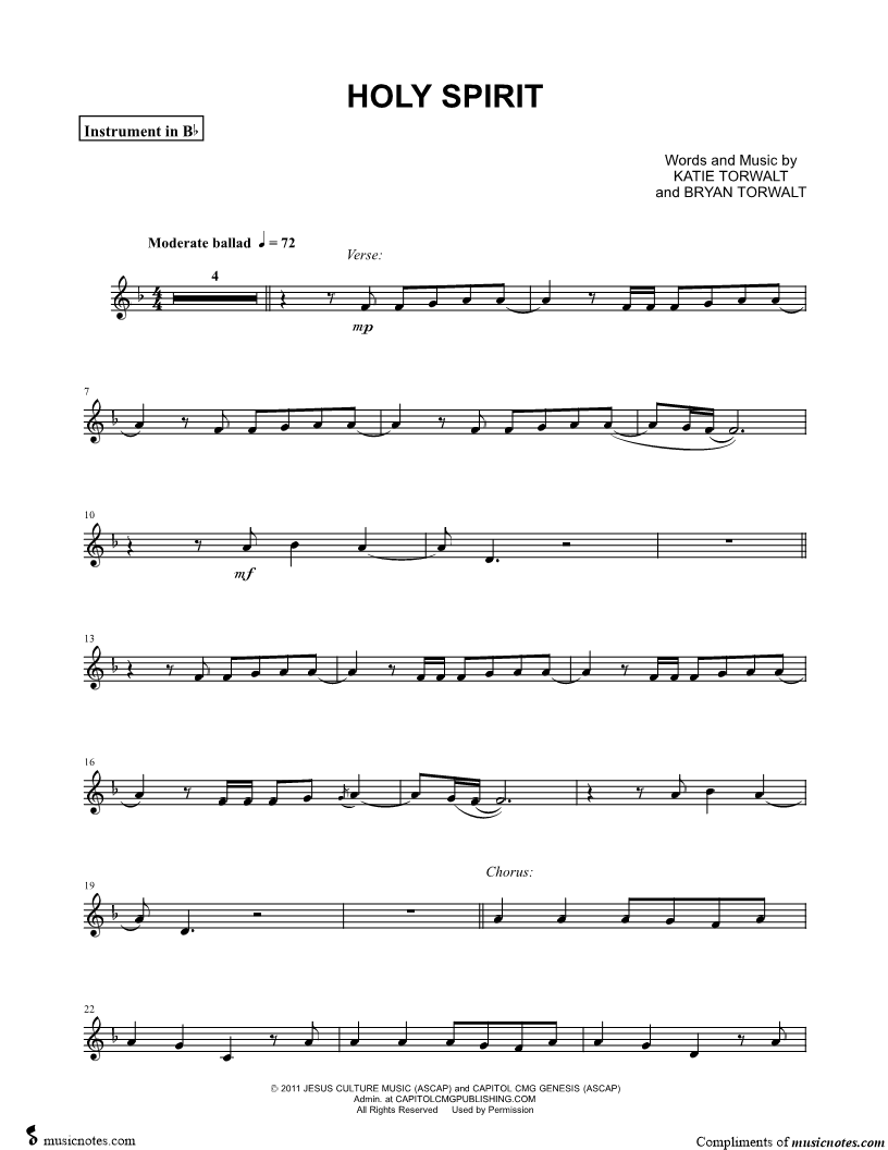 Holy Spirit - Bb Instrument |