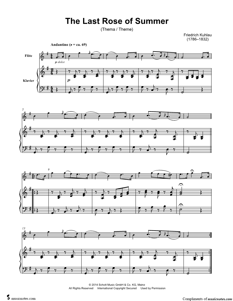 The Last Rose of Summer (Theme) - Flute & Piano |