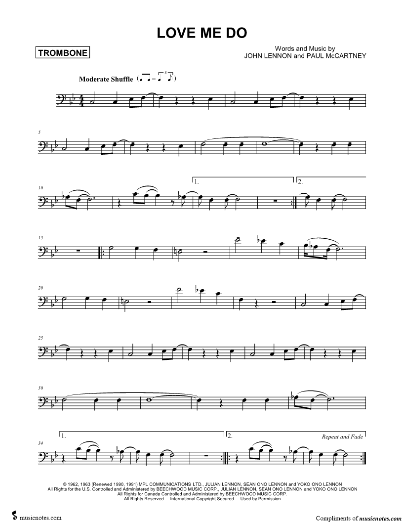 Trombone, range: C3-F4 | |
