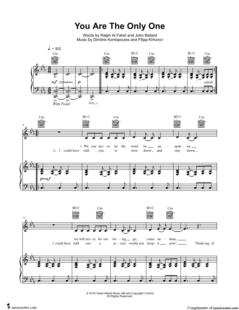 We can never let the word be unspoken, we will never let our loving go, come undone, ev'rything we had is staying unbroken, now you will always be the only one, you're the only one. |