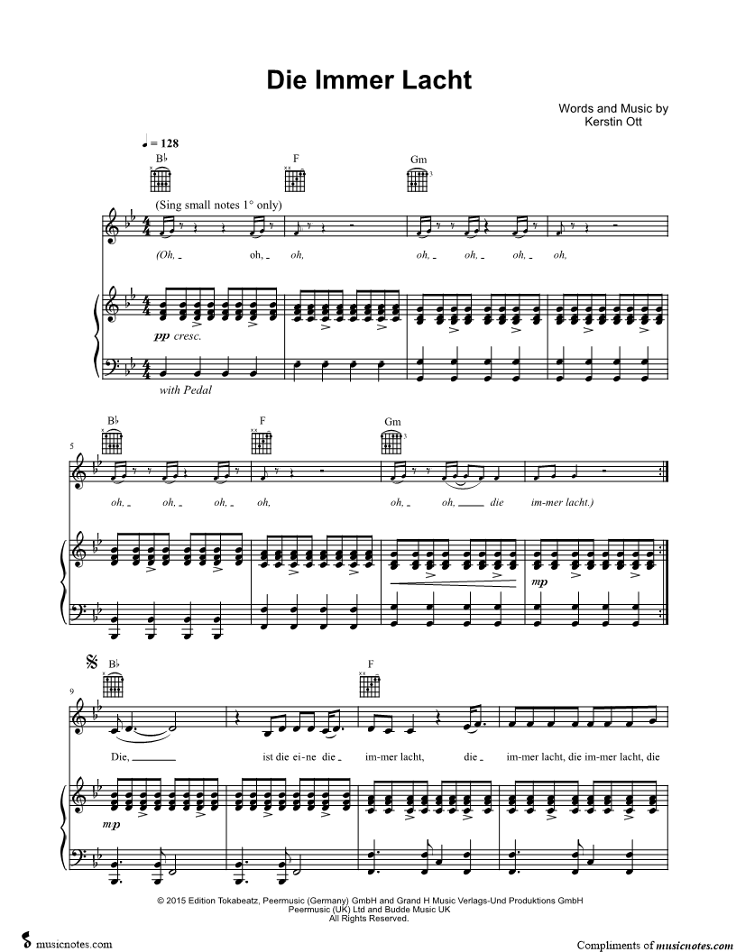 Musicnotes sells a wide variety of digital sheet music products including Singer Pros, Beginner Notes, Choral music, Piano Solos, Lead Sheets, Piano/Vocal/Guitar, Solo and Accompaniment, and fretted instrument tablature.