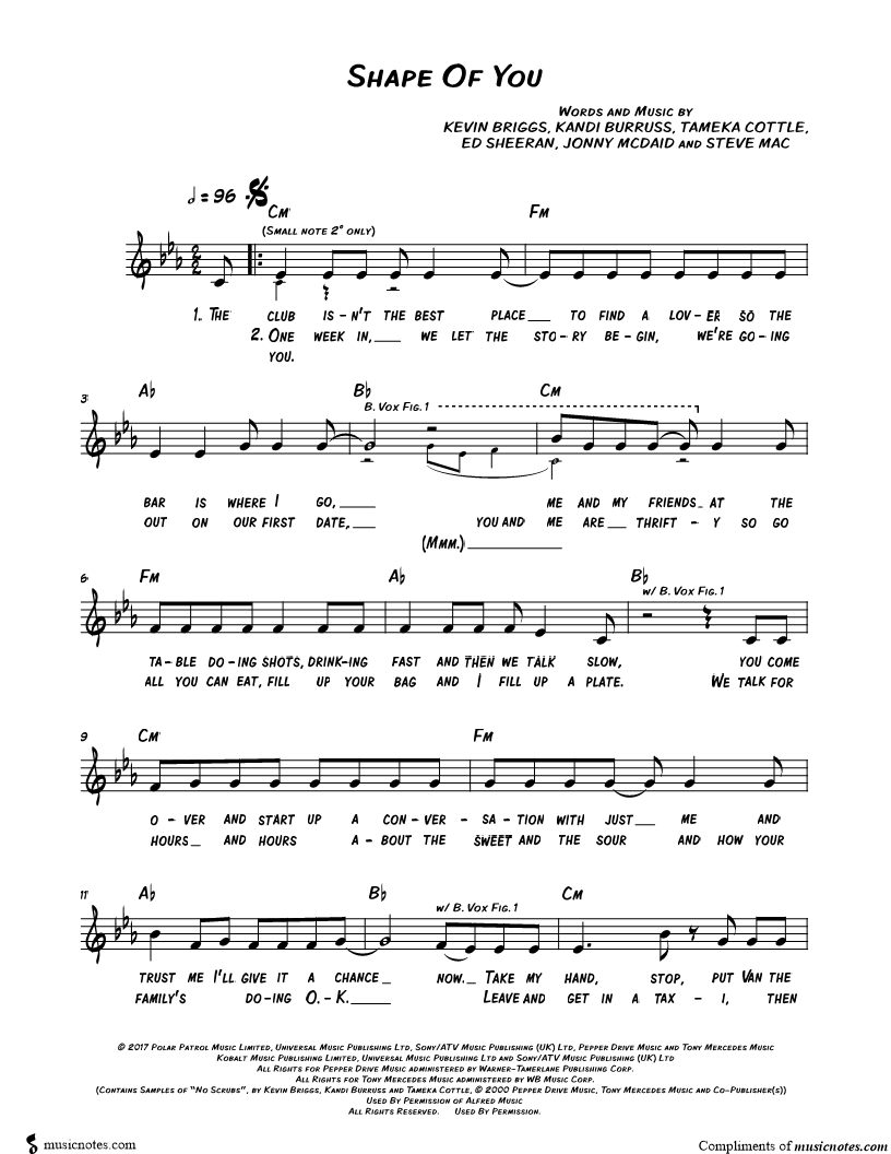 Leadsheets typically only contain the lyrics, chord symbols and melody line of a song and are rarely more than one page in length. Musicians will often use these skeletons to improvise their own arrangements. Leadsheets often do not contain complete lyrics to the song.