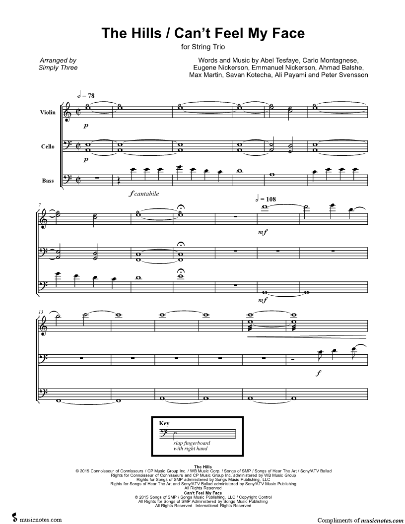 Violin, range: C4-E6 Cello, range: F2-E5 Double Bass, range: F2-A5 | |