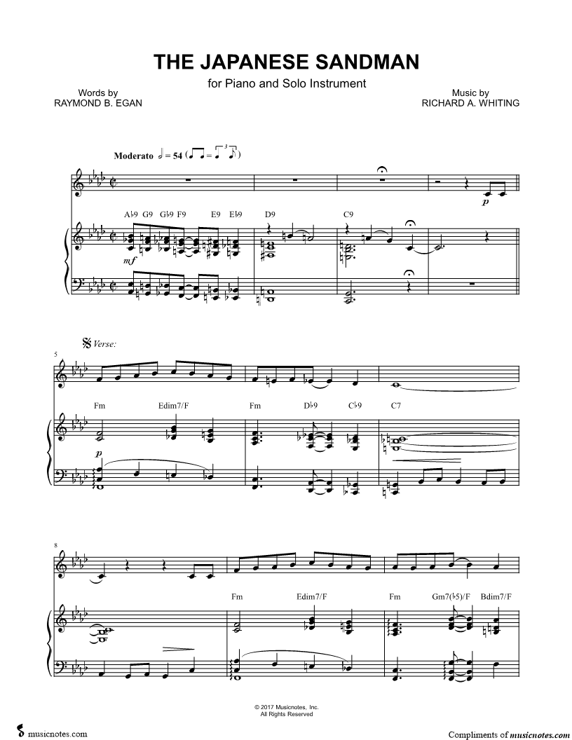 The Japanese Sandman - Bass Clef Instrument & Piano