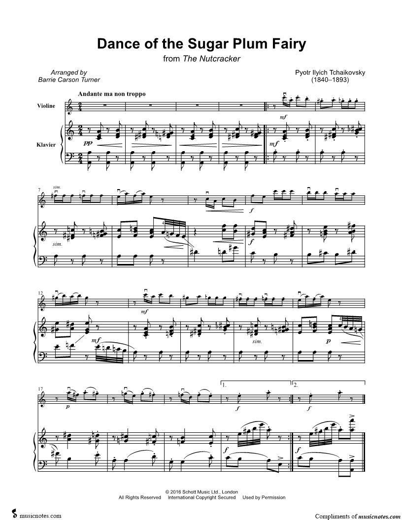 Dance of the Sugar Plum Fairy [excerpt] - Violin & Piano |