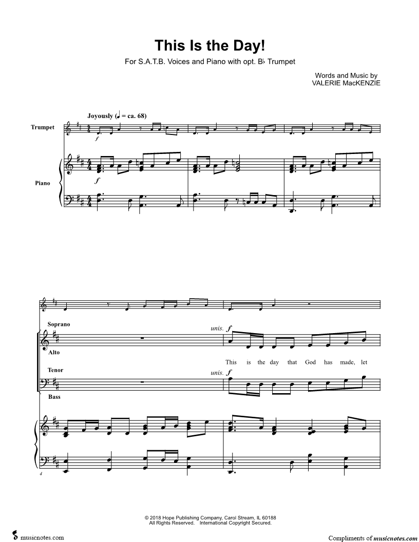 SATB Choir Piano Accompaniment Trumpet, range: E4-Bb5 | |