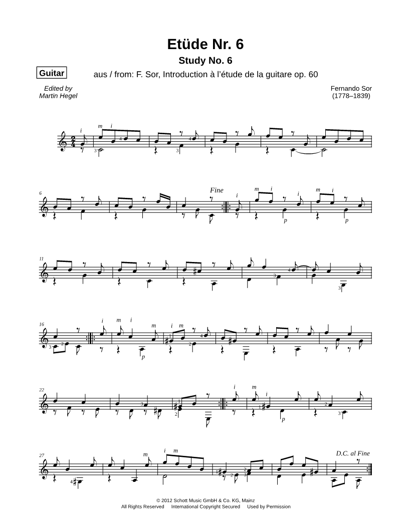 Introduction à l'étude de la guitare, Op. 60 - Etüde No. 6 |