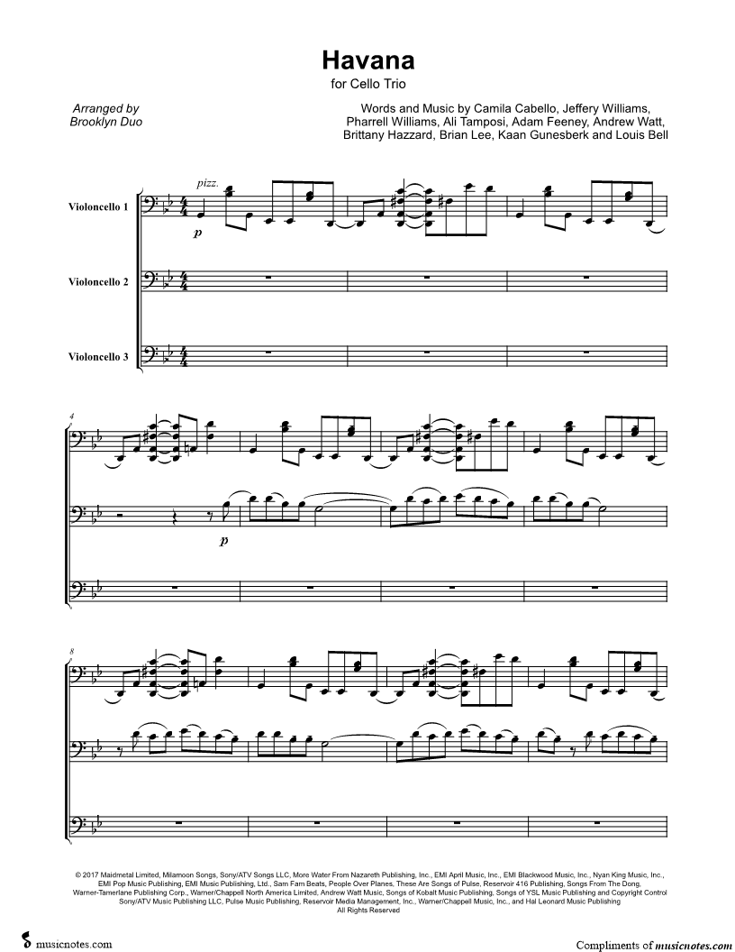 Cello 1, range: D3-G6 Cello 2, range: D2-A5 Cello 3, range: D2-D5 | |