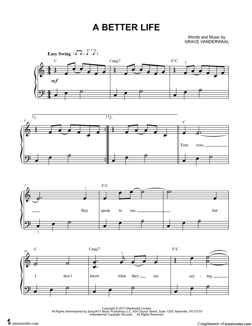 Musicnotes sells a wide variety of digital sheet music products including Singer Pros, Beginner Notes, Choral music, Piano Solos, Lead Sheets, Piano/Vocal/Guitar, Solo and Accompaniment, and fretted instrument tablature.