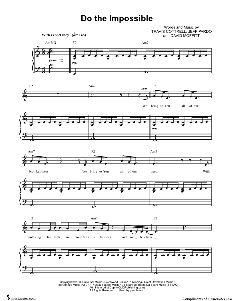 Many of the arrangements on Musicnotes have transpositions available, typically in C Major, as well as 3 sharps and 3 flats. If you do not see your desired key, you can request a transposition by reaching out to Customer Support.