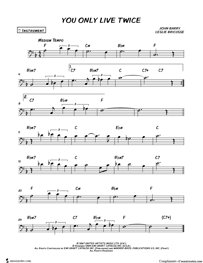 You Only Live Twice - Bass Clef Instrument |