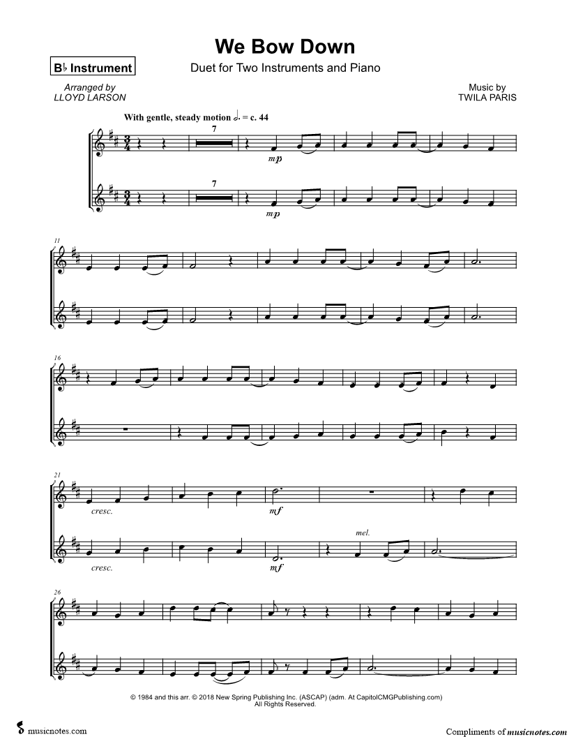 We Bow Down - Bb Instrument Duet |