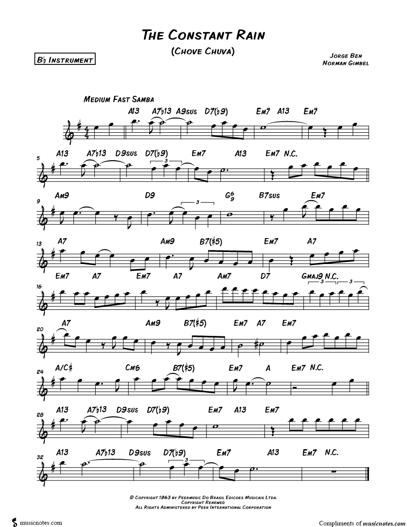 The Constant Rain (Chove Chuva) - Bb Instrument |