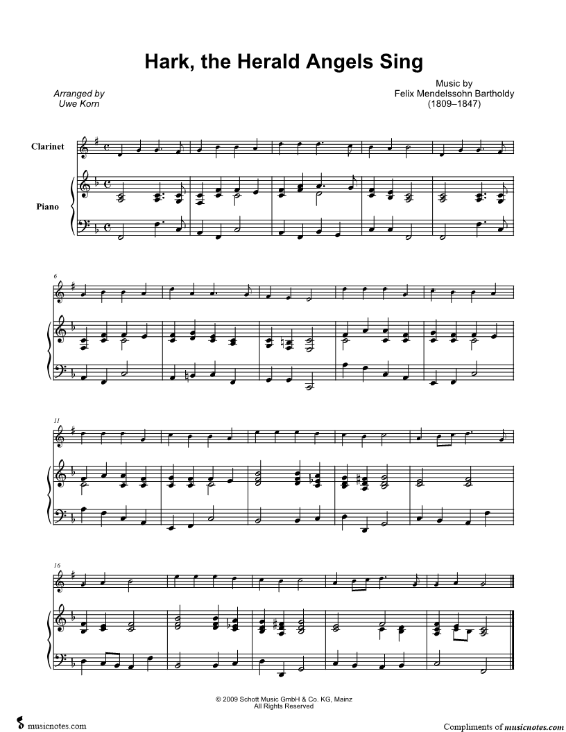 Hark! the Herald Angels Sing - Clarinet & Piano |