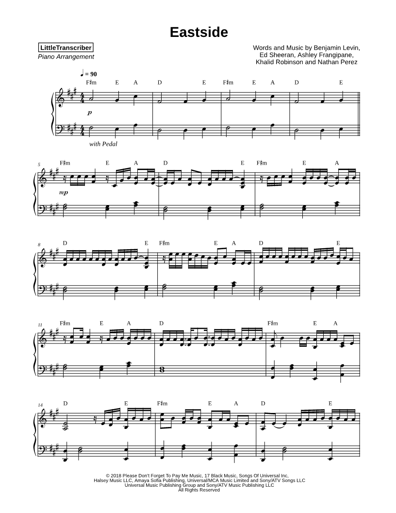 Many of the arrangements on Musicnotes have transpositions available, typically in C Major, as well as 3 sharps and 3 flats. If you do not see your desired key, you can request a transposition by reaching out to Customer Support.