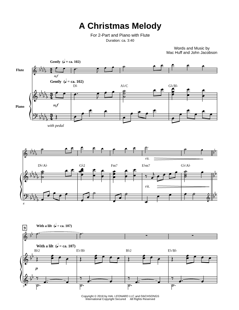 Flute, range: F4-F6 2-Part Choir Piano Accompaniment | |