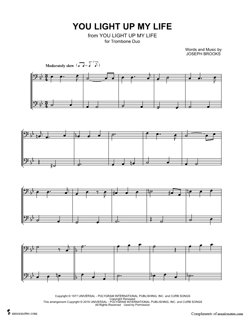 You Light Up My Life - Trombone Duet |
