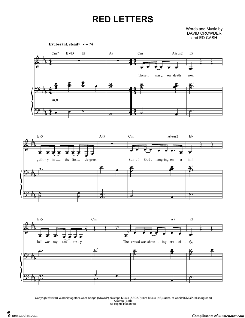 Many of the arrangements on Musicnotes have transpositions available, typically in C Major, as well as 3 sharps and 3 flats. If you do not see your desired key, you can request a transposition by reaching out to Customer Support.