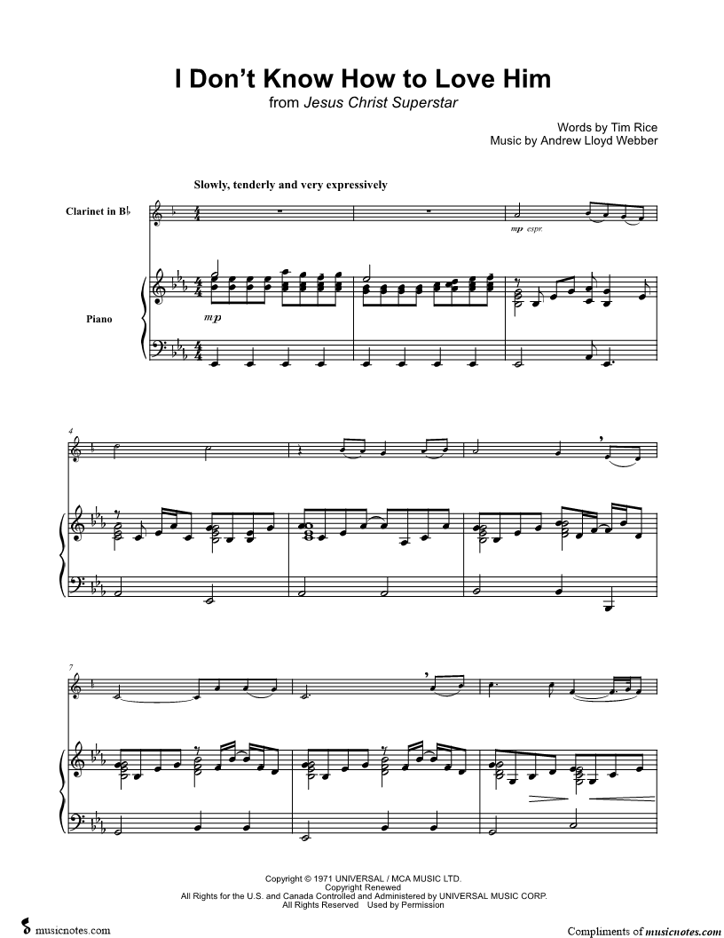 I Don't Know How to Love Him - Clarinet & Piano |