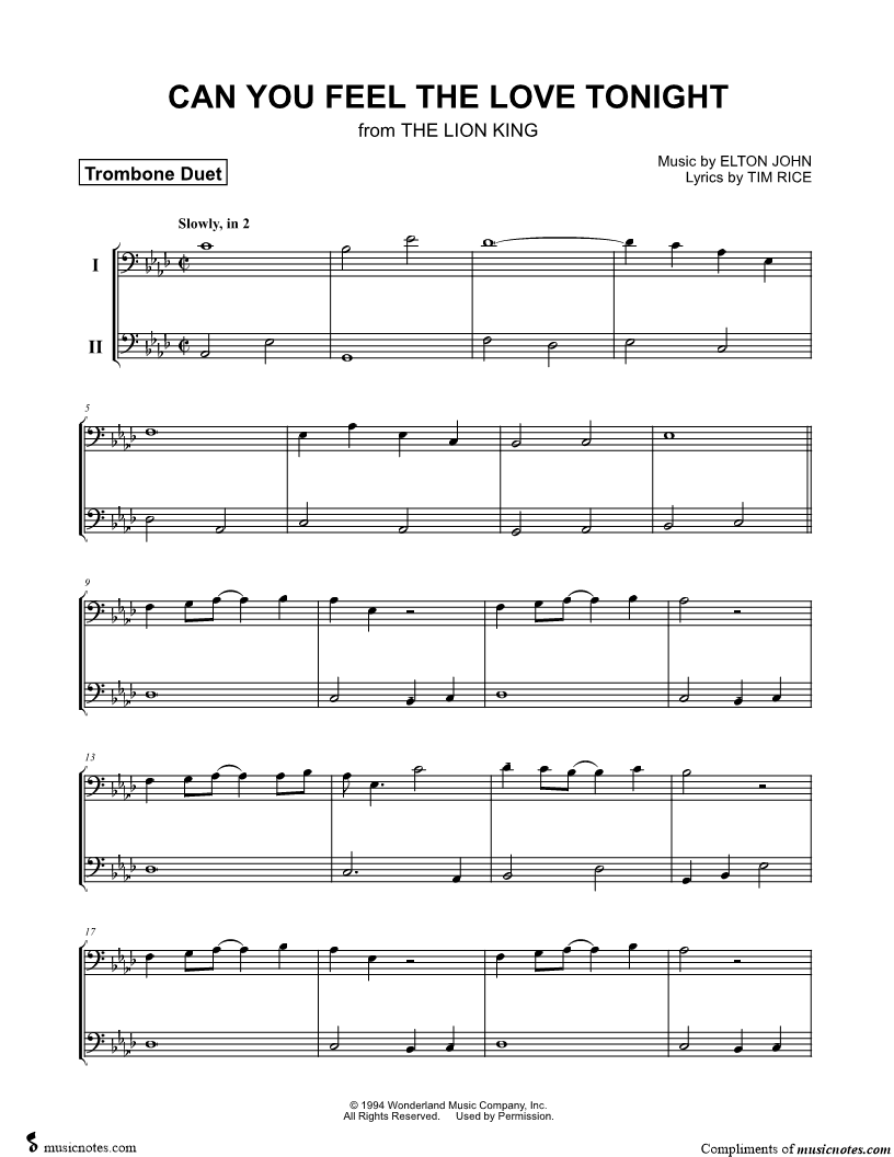 Can You Feel the Love Tonight - Trombone Duet |