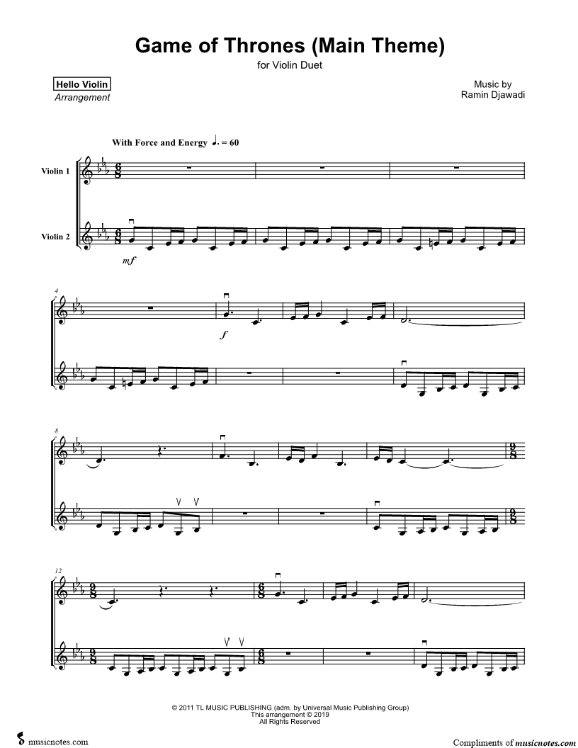 Violin 1, range: Ab3-G5 Violin 2, range: G3-D5 | |