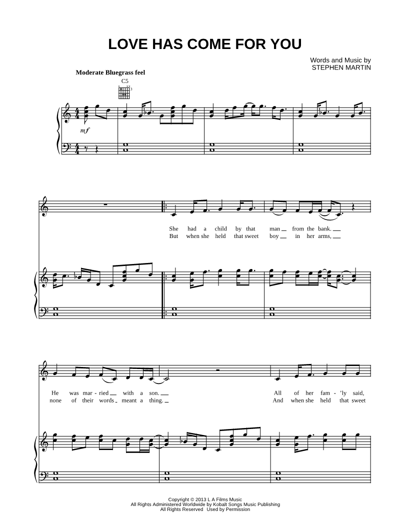 Many of the arrangements on Musicnotes have transpositions available, typically in C Major, as well as 3 sharps and 3 flats. If you do not see your desired key, you can request a transposition by reaching out to Customer Support.