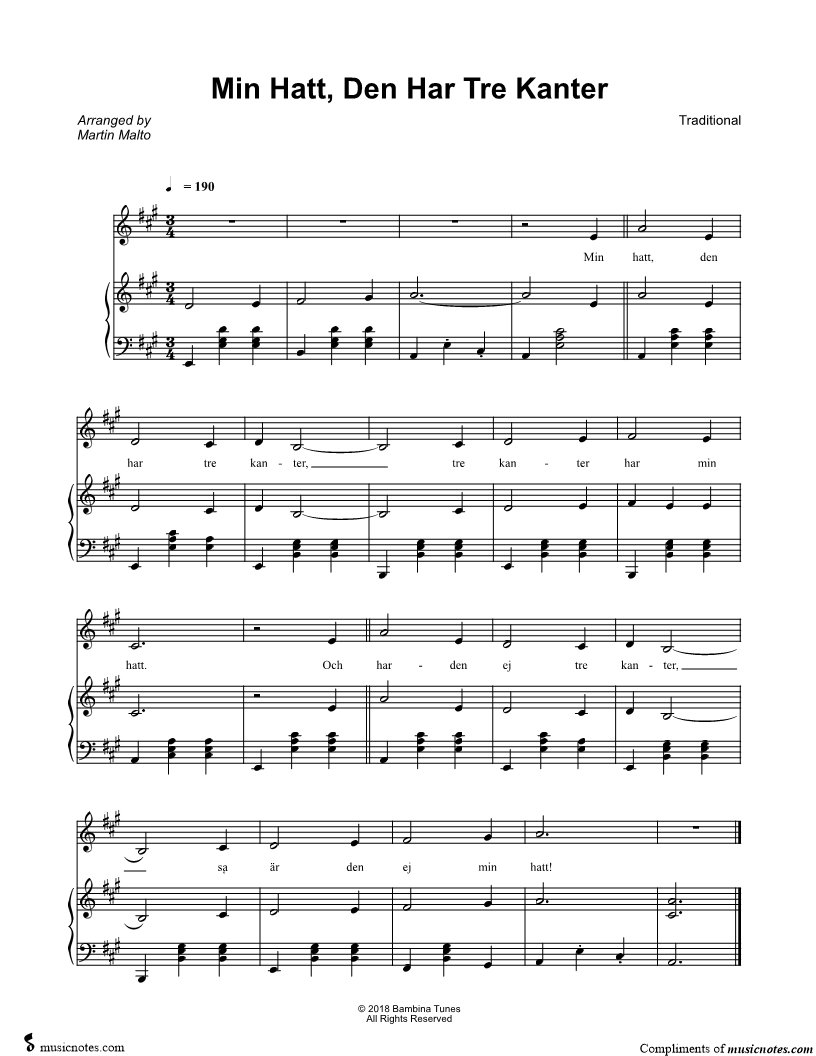 Min hatt, den har tre kanter, tre kanter har min hatt. |