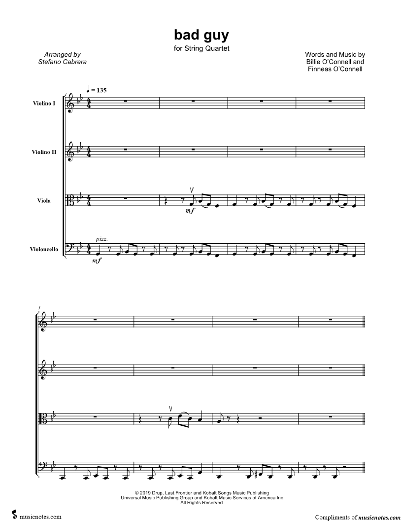 Violin 1, range: G3-D6 Violin 2, range: G3-D5 Viola, range: C3-Bb4 Cello, range: C2-D4 | |