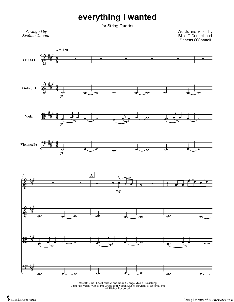 Violin 1, range: G#3-C#6 Violin 2, range: G#3-G#5 Viola, range: C#3-A4 Cello, range: C#2-E4 | |