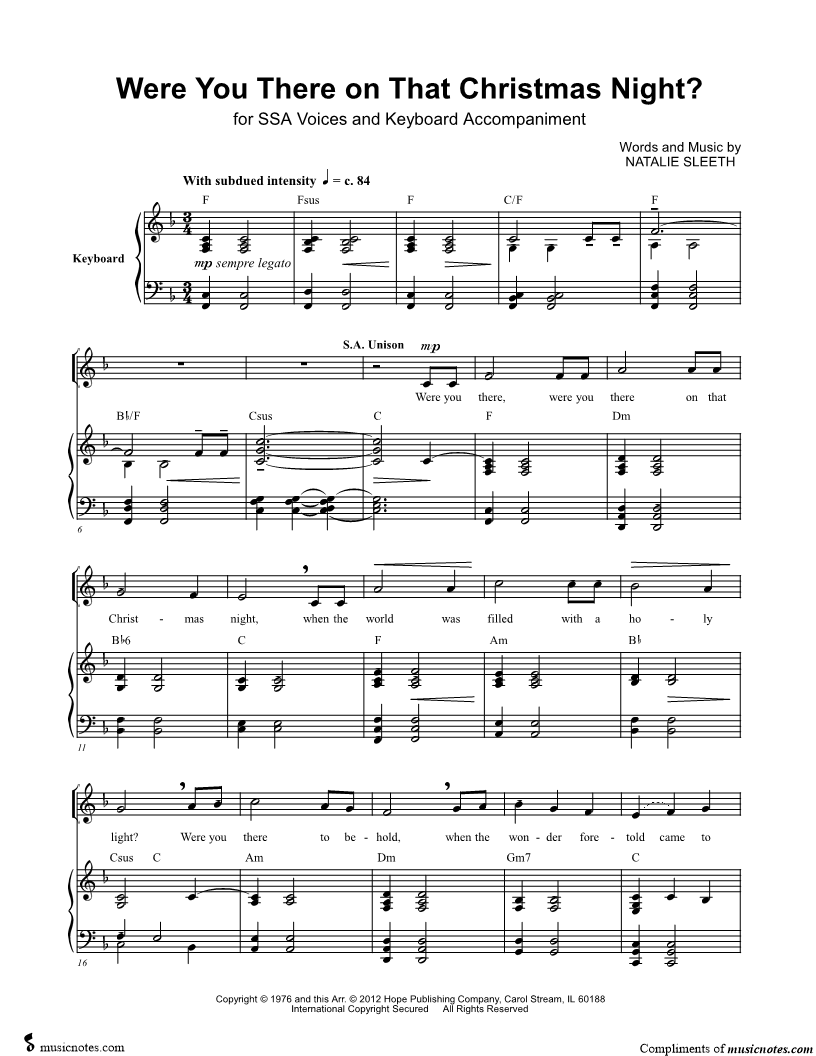 Were you there, were you there on that Christmas night, when the world was filled with a holy light? |
