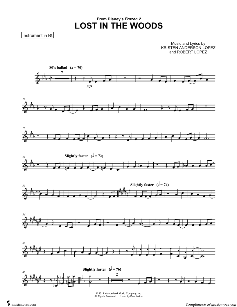 Lost in the Woods - Bb Instrument & Piano (from Disney's Frozen 2)