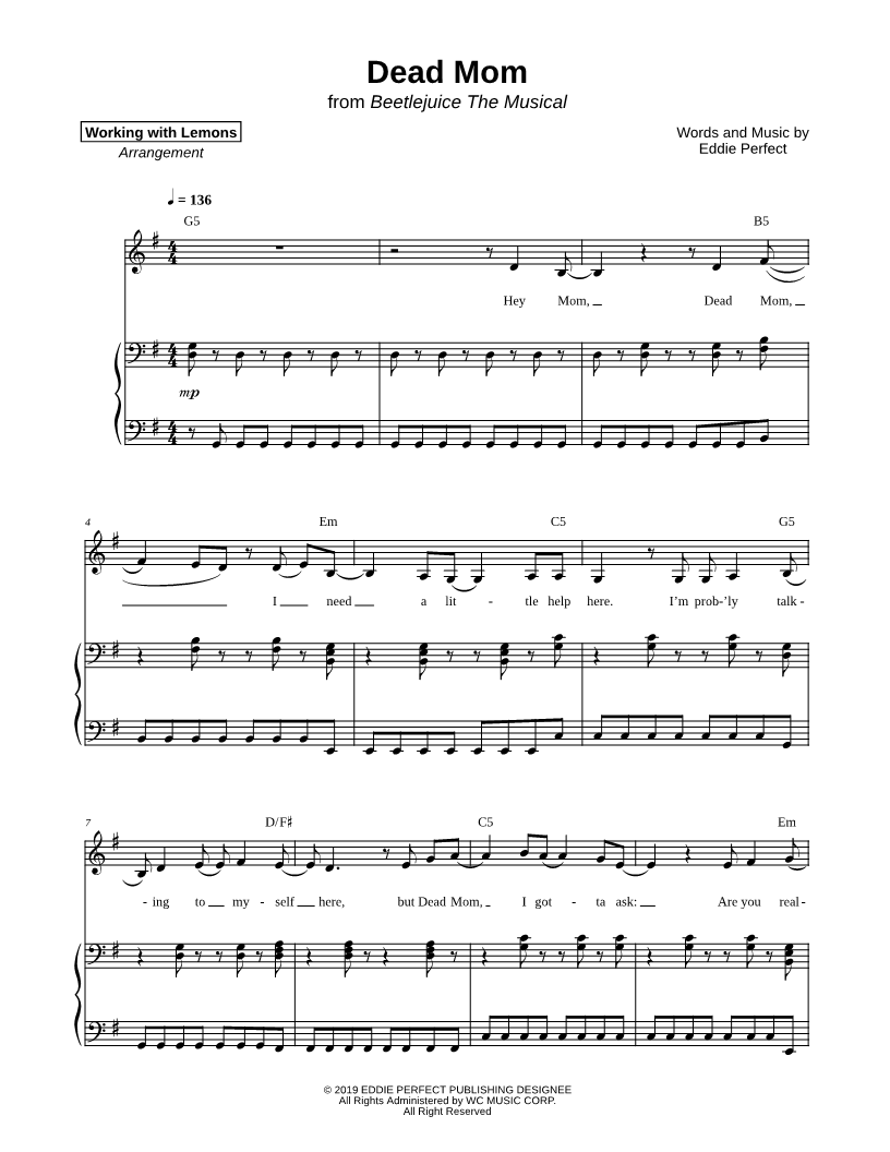 Many of the arrangements on Musicnotes have transpositions available, typically in C Major, as well as 3 sharps and 3 flats. If you do not see your desired key, you can request a transposition by reaching out to Customer Support.