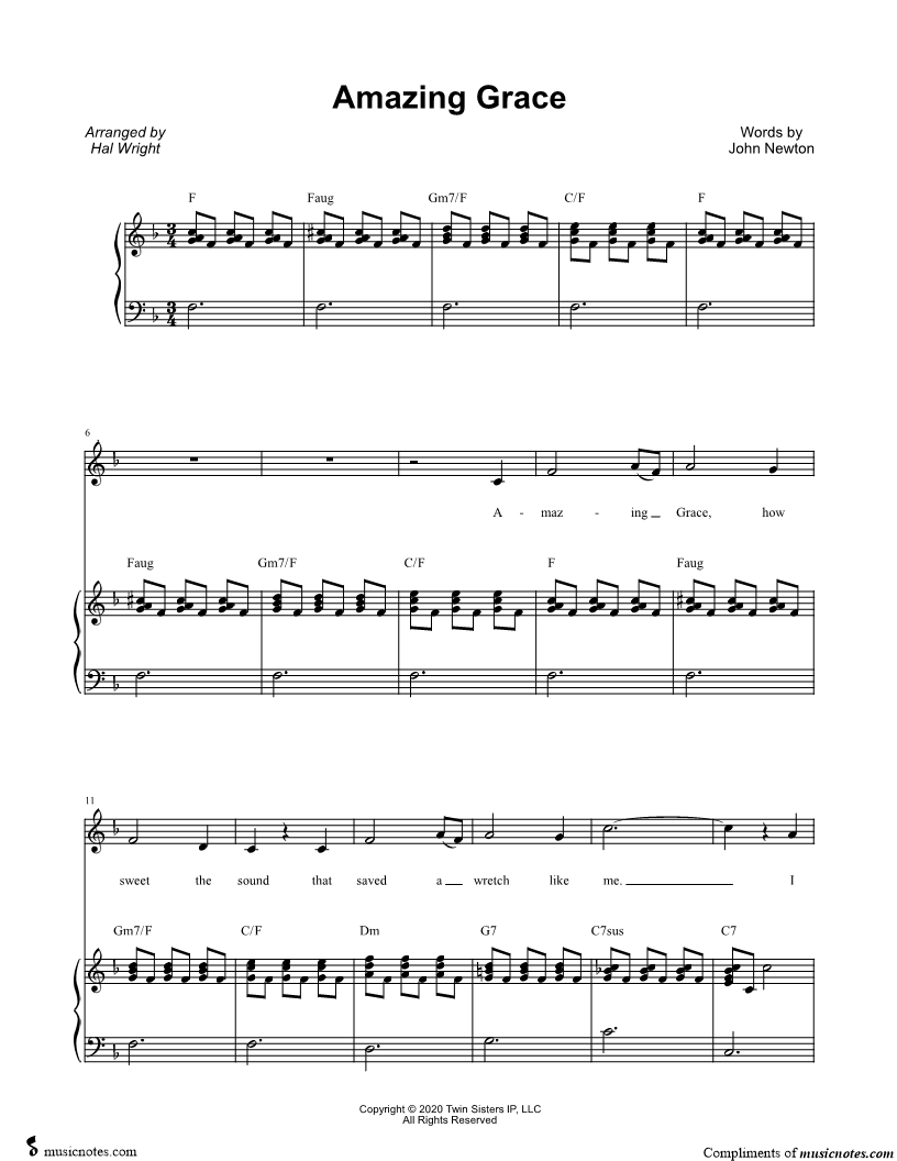 Amazing Grace, how sweet the sound that saved a wretch like me. |