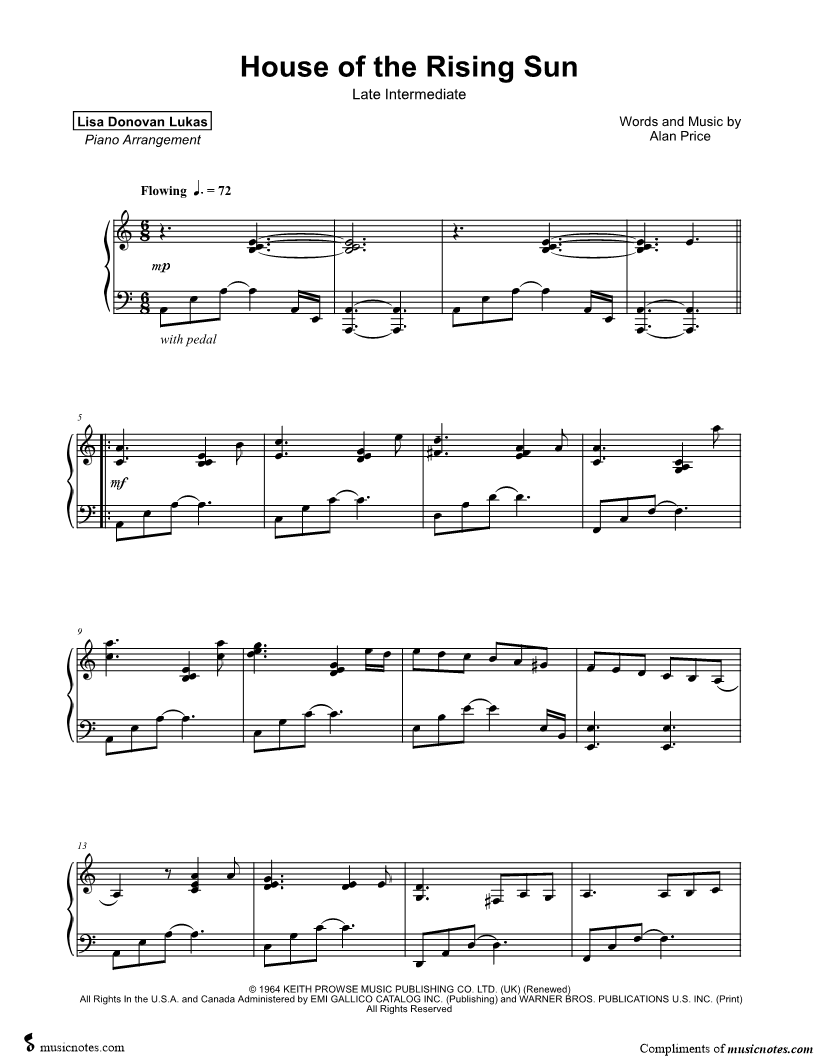 The House of the Rising Sun [late intermediate] |