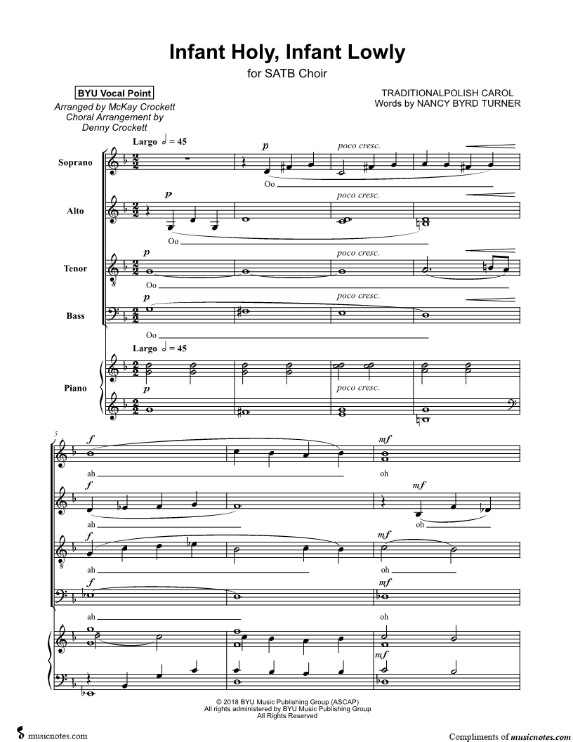 Infant holy, infant lowly, for his bed a cattle stall. |