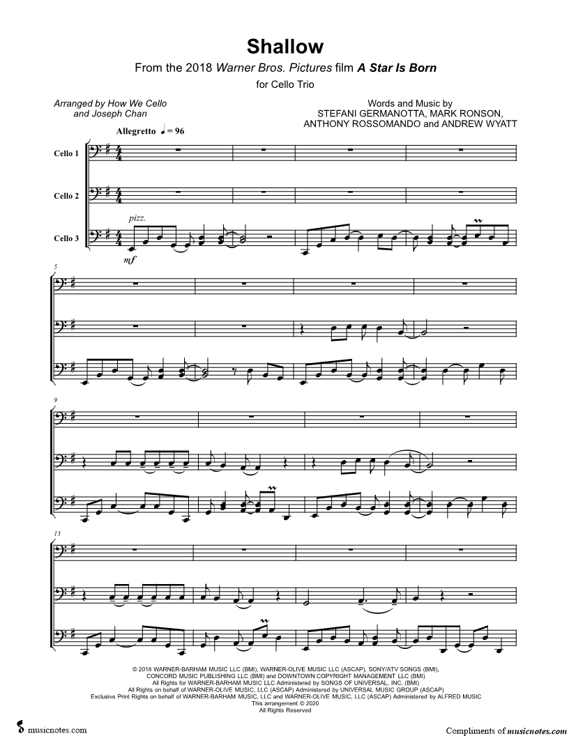 Shallow - Cello Trio |