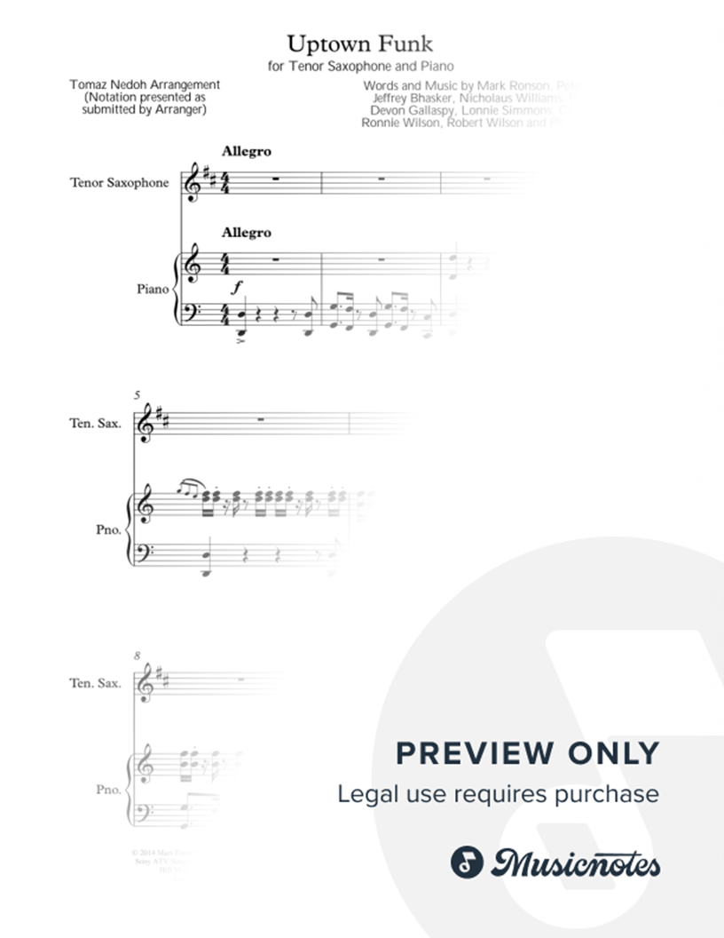 Uptown Funk - Tenor Saxophone & Piano |
