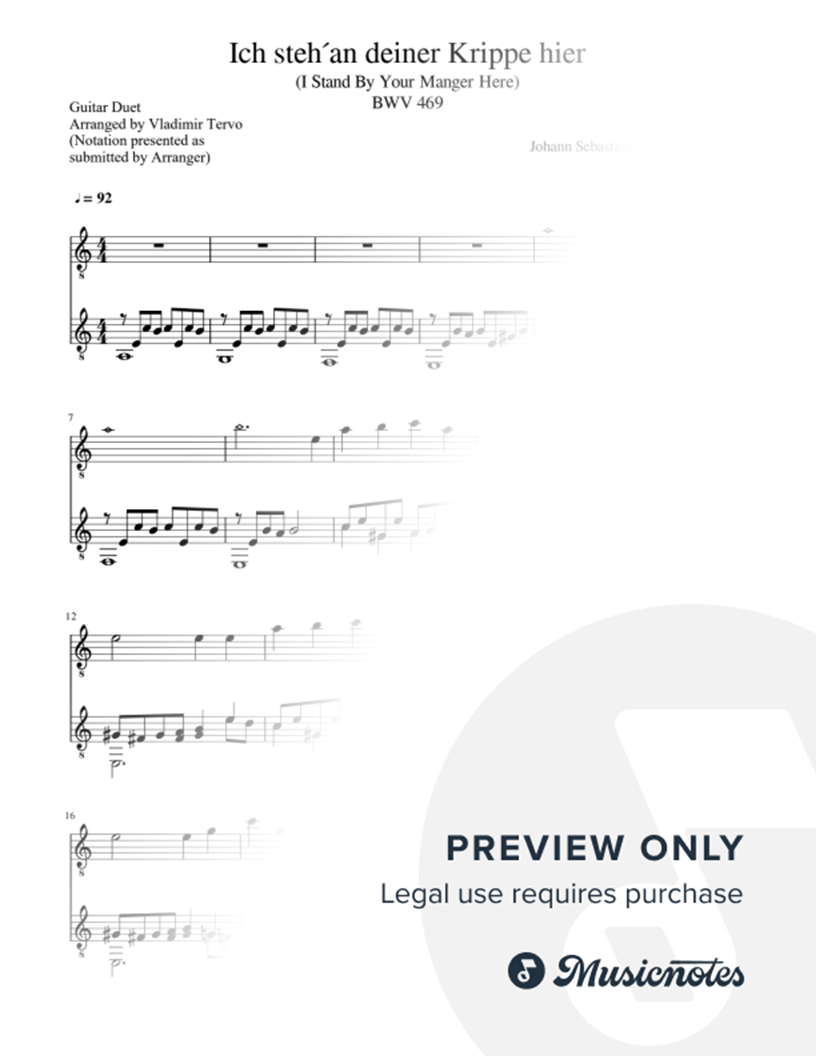 Ich steh an deiner Krippe hier - Guitar Duet |