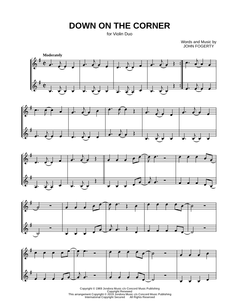 Down on the Corner - Violin Duet |