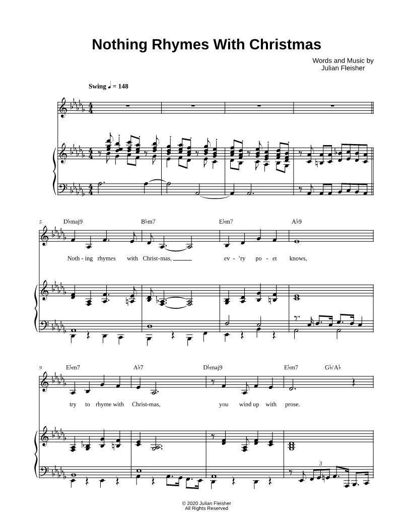 Nothing rhymes with Christmas, ev'ry poet knows, try to rhyme with Christmas, you wind up with prose. |