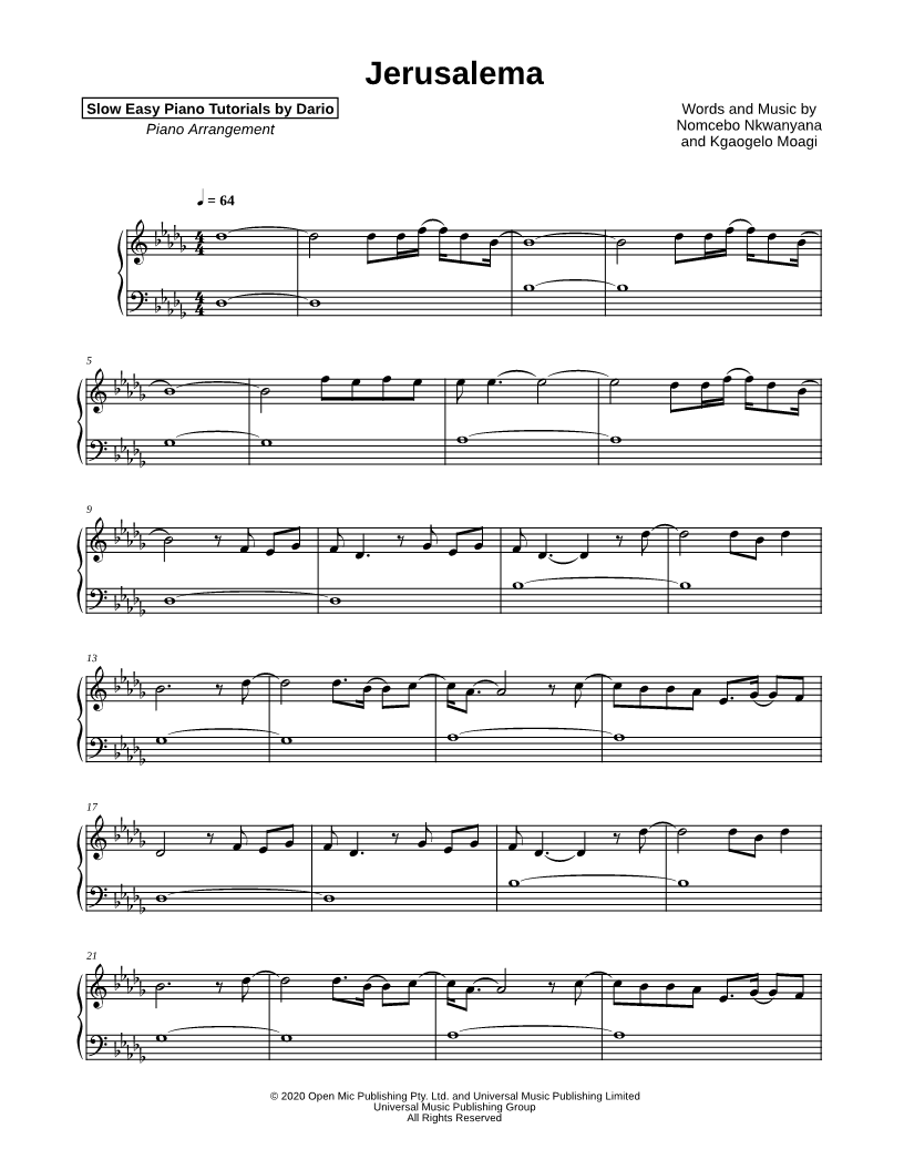 Jerusalema [Slow Easy Piano Tutorial] |