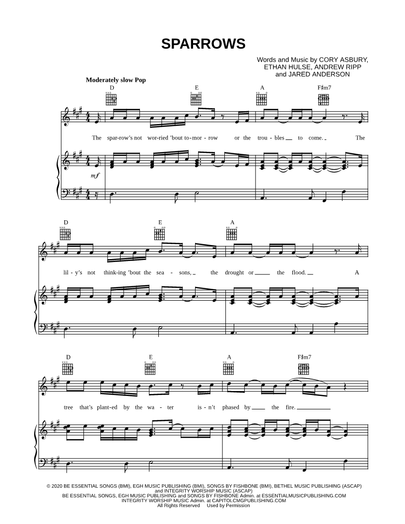 The sparrow's not worried 'bout tomorrow or the troubles to come. |