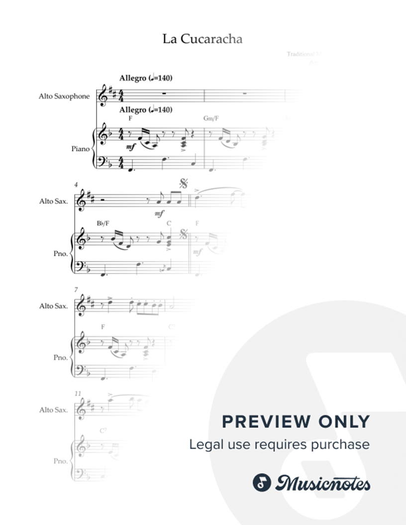 La Cucaracha - Alto Saxophone & Piano |
