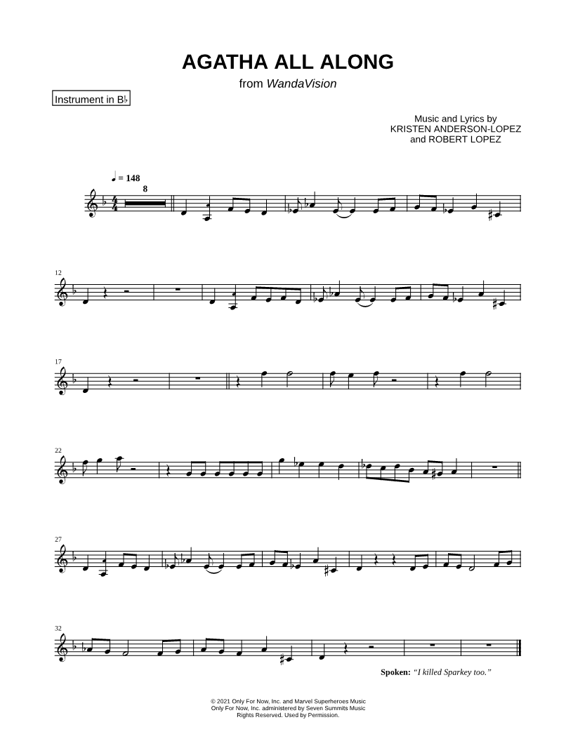 Agatha All Along - Bb Instrument |