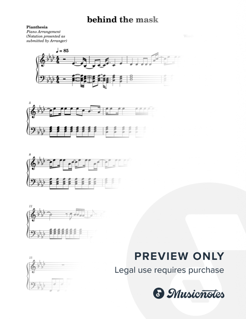 Musicnotes sells a wide variety of digital sheet music products including Singer Pros, Beginner Notes, Choral music, Piano Solos, Lead Sheets, Piano/Vocal/Guitar, Solo and Accompaniment, and fretted instrument tablature.