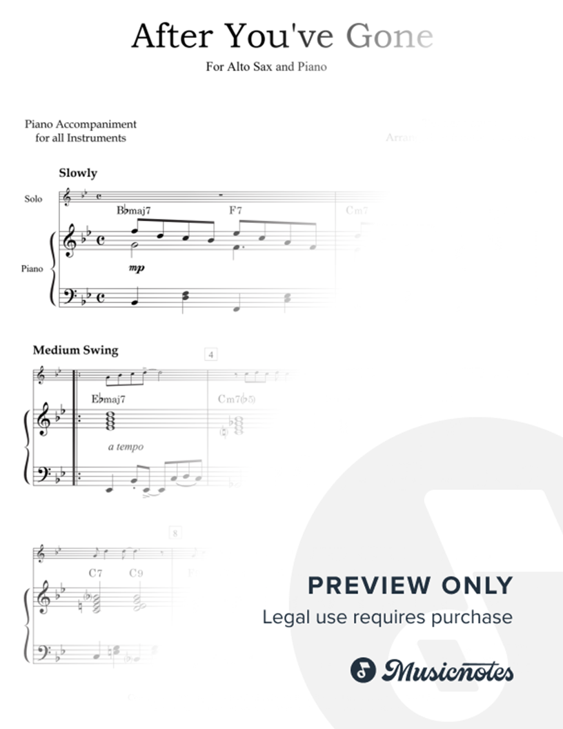 After You've Gone - Alto Saxophone & Piano |