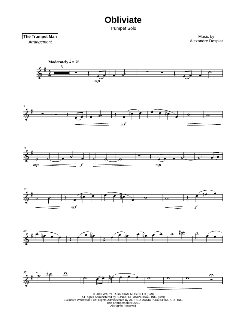 Trumpet, range: E4-D6 | |