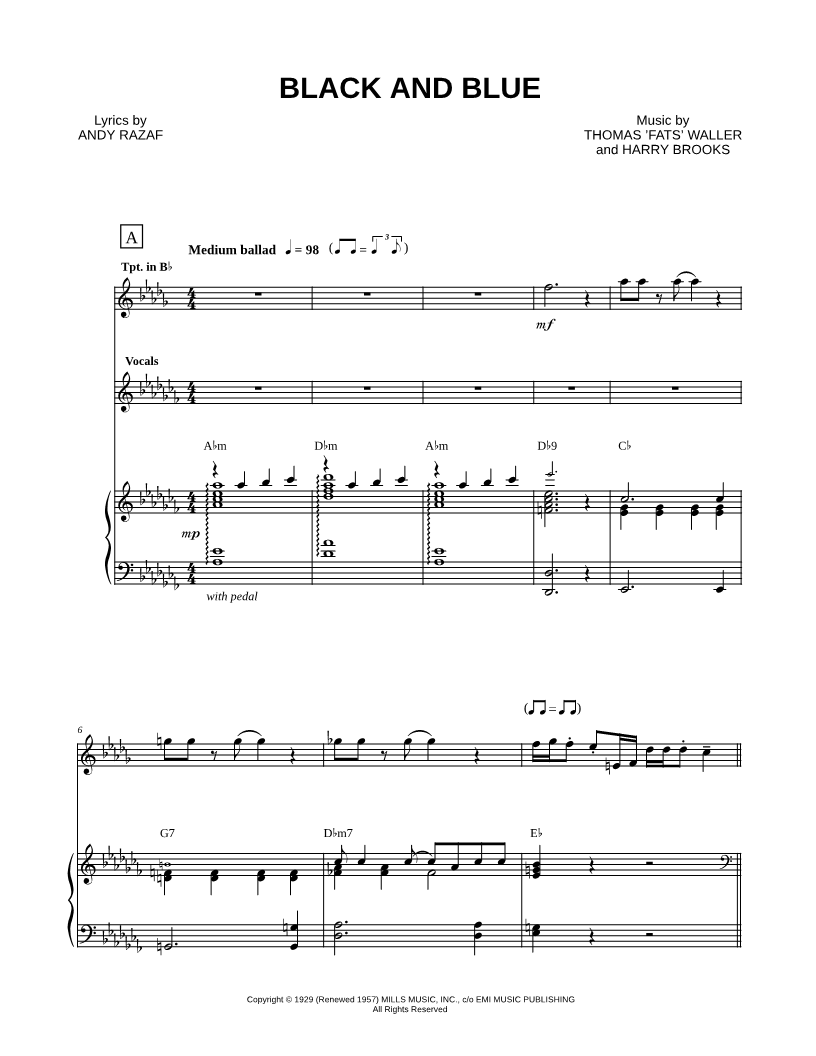 Trumpet, range: Bb3-Db6 Voice, range: Eb4-Fb5 Piano | |