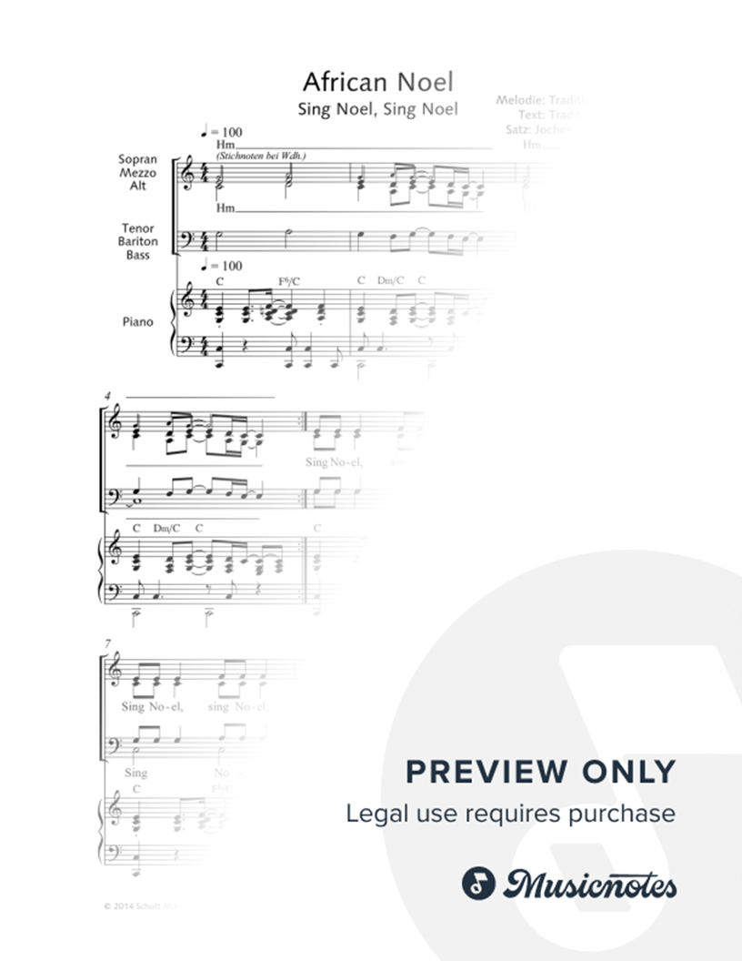 Many of the arrangements on Musicnotes have transpositions available, typically in C Major, as well as 3 sharps and 3 flats. If you do not see your desired key, you can request a transposition by reaching out to Customer Support.